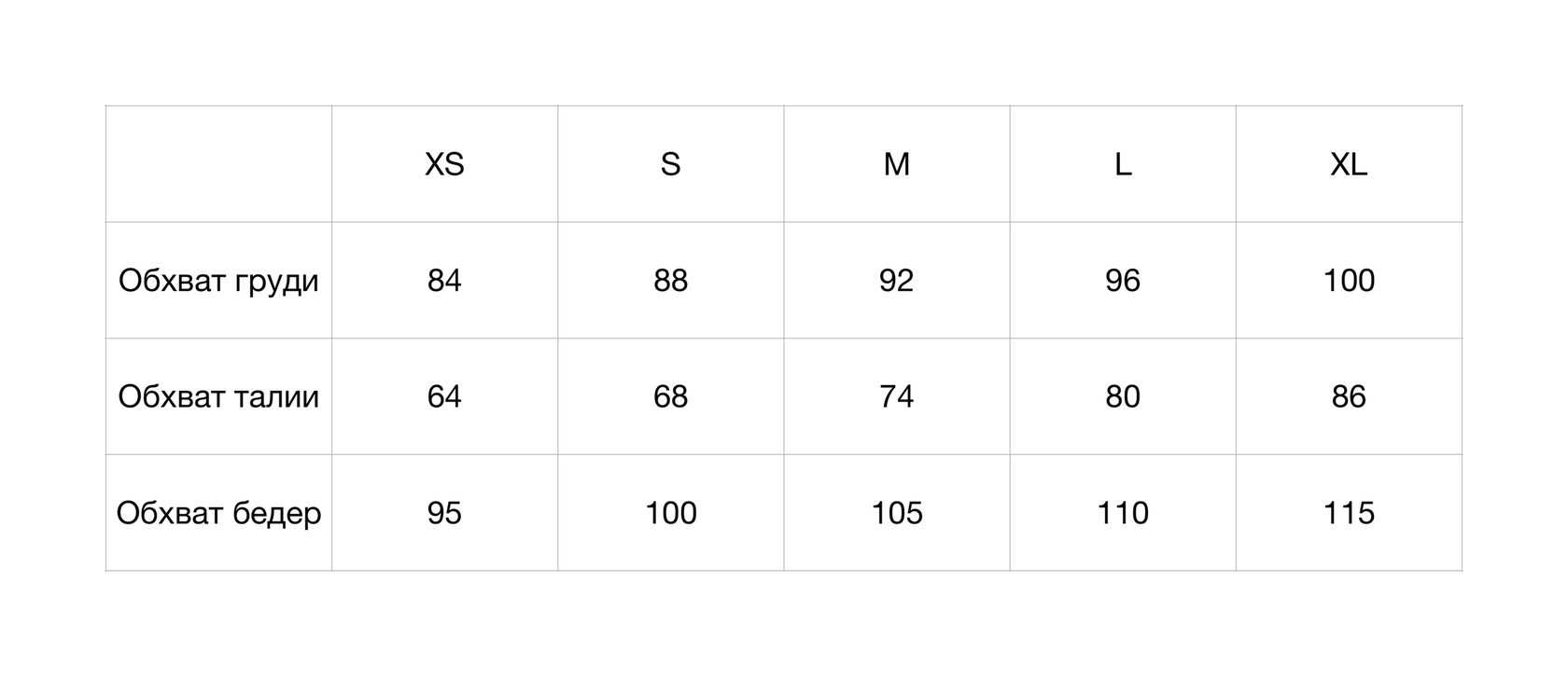 Таблица размеров